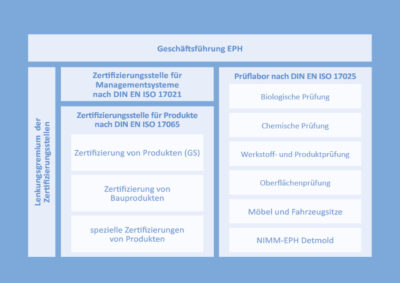 Die Qualität der Prüf- und Zertifizierungsleistungen des EPH werden durch akkreditierte Managementsysteme gesteuert. Neben dem Hauptsitz in Dresden verfügt EPH über eine Zweigstelle in Detmold (NIMM-EPH), deren Schwerpunkt die Möbelprüfung ist.